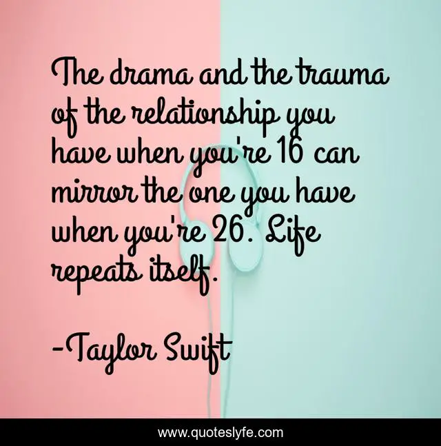 This page presents the quote "The drama and the trauma of the relationship you have when you're 16 can mirror the one you have when you're 26. Life repeats itself.". Author of this quote is Taylor Swift. This quote is about drama, life, mirror,.