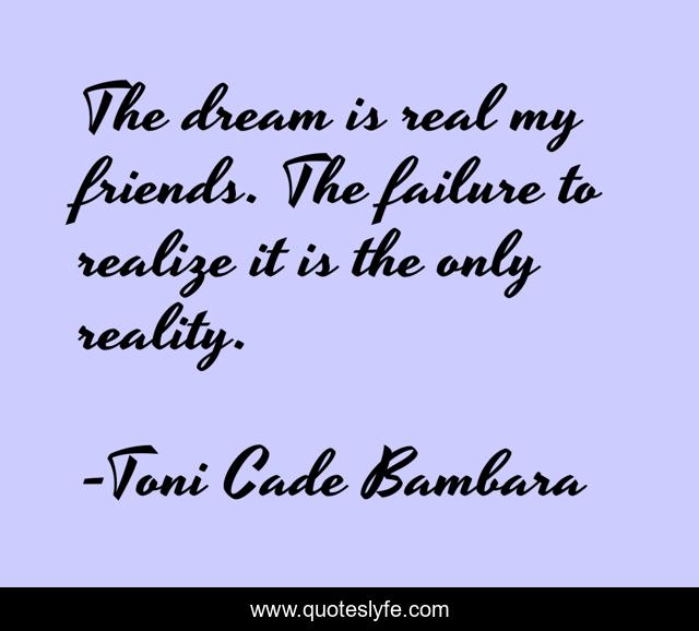 This page presents the quote "The dream is real my friends. The failure to realize it is the only reality.". Author of this quote is Toni Cade Bambara. .