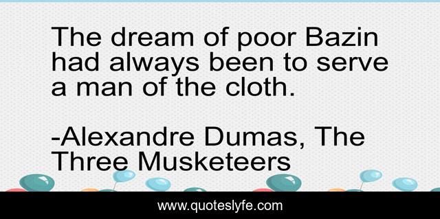 This page presents the quote "The dream of poor Bazin had always been to serve a man of the cloth.". Author of this quote is Alexandre Dumas, The Three Musketeers. .
