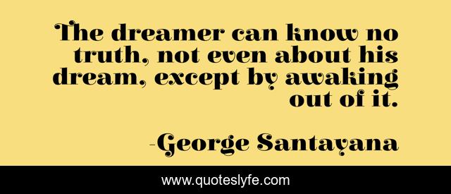 This page presents the quote "The dreamer can know no truth, not even about his dream, except by awaking out of it.". Author of this quote is George Santayana. This quote is about dream, truth,.