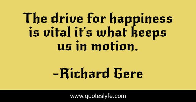 This page presents the quote "The drive for happiness is vital it's what keeps us in motion.". Author of this quote is Richard Gere. This quote is about motion, drive, us,.