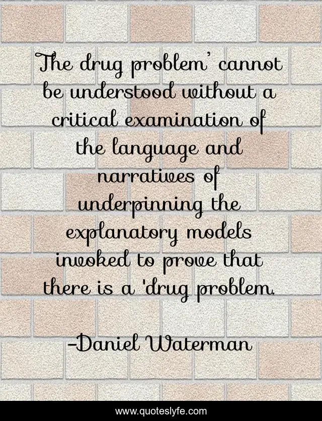 This page presents the quote "The drug problem’ cannot be understood without a critical examination of the language and narratives of underpinning the explanatory models invoked to prove that there is a 'drug problem.". Author of this quote is Daniel Waterman. This quote is about drugs, drug-problem, explanatory-model,.