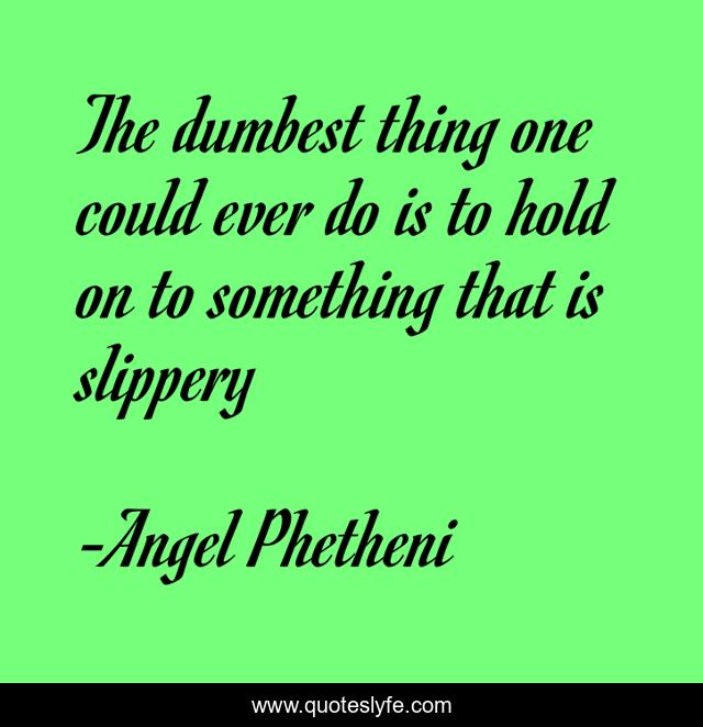 This page presents the quote "The dumbest thing one could ever do is to hold on to something that is slippery". Author of this quote is Angel Phetheni. .