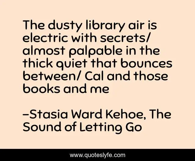 "Stasia Ward Kehoe, The Sound of Letting Go Quotes." Quoteslyfe.com, 2025. Mon. 08 Dec. 2025. <https://www.quoteslyfe.com/quote/The-dusty-library-air-is-electric-with-228654>.