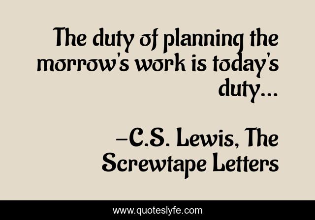 "C.S. Lewis, The Screwtape Letters Quotes." Quoteslyfe.com, 2025. Fri. 05 Dec. 2025. <https://www.quoteslyfe.com/quote/The-duty-of-planning-the-morrow-s-200802>.