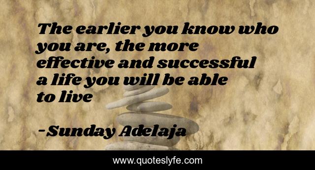 This page presents the quote "The earlier you know who you are, the more effective and successful a life you will be able to live". Author of this quote is Sunday Adelaja. This quote is about life, knowledge, self-knowledge, successful-life, purpose, effectiveness,.
