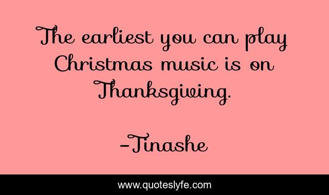 This page presents the quote "The earliest you can play Christmas music is on Thanksgiving.". Author of this quote is Tinashe. This quote is about play, music, thanksgiving,.