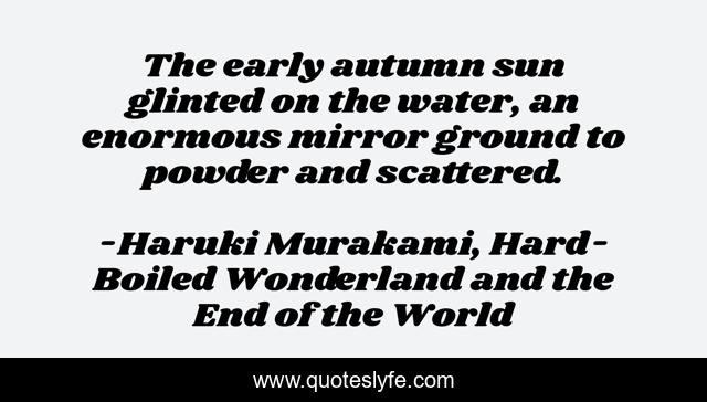 This page presents the quote "The early autumn sun glinted on the water, an enormous mirror ground to powder and scattered.". Author of this quote is Haruki Murakami, Hard-Boiled Wonderland and the End of the World. .