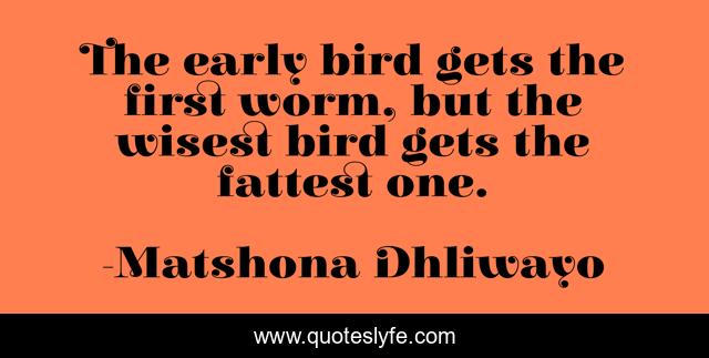 "Matshona Dhliwayo Quotes." Quoteslyfe.com, 2025. Sat. 06 Dec. 2025. <https://www.quoteslyfe.com/quote/The-early-bird-gets-the-first-worm-97993>.