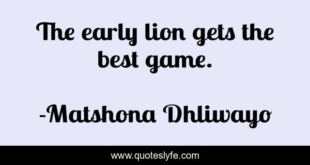 "Matshona Dhliwayo Quotes." Quoteslyfe.com, 2025. Mon. 08 Dec. 2025. <https://www.quoteslyfe.com/quote/The-early-lion-gets-the-best-game-207570>.