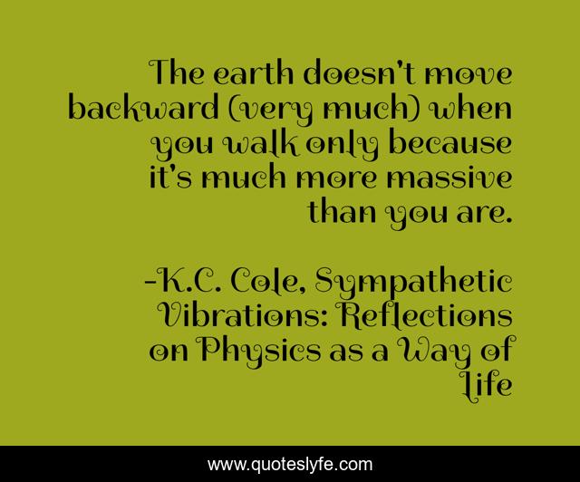 "K.C. Cole, Sympathetic Vibrations: Reflections on Physics as a Way of Life Quotes." Quoteslyfe.com, 2025. Fri. 05 Dec. 2025. <https://www.quoteslyfe.com/quote/The-earth-doesn-t-move-backward-very-241987>.
