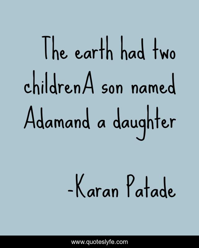 This page presents the quote "The earth had two childrenA son named Adamand a daughter". Author of this quote is Karan Patade. This quote is about woman, daughter, girl-child, religion, eve, women-rights, son, spirituality, adam,.