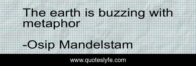 This page presents the quote "The earth is buzzing with metaphor". Author of this quote is Osip Mandelstam. This quote is about earth, metaphor,.