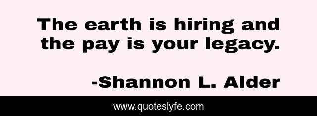 This page presents the quote "The earth is hiring and the pay is your legacy.". Author of this quote is Shannon L. Alder. This quote is about love, legacy, earth, happiness, caring, beauty, service, giving, activism,.