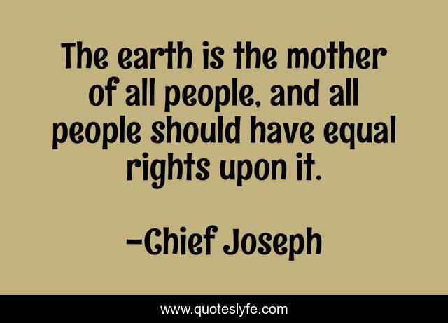 This page presents the quote "The earth is the mother of all people, and all people should have equal rights upon it.". Author of this quote is Chief Joseph. This quote is about earth, mother, people,.