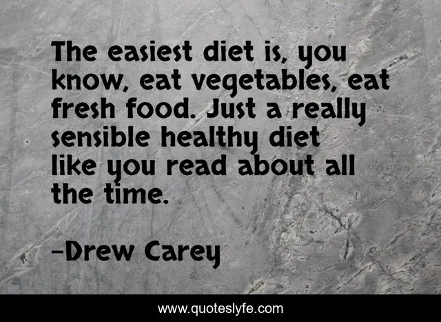 This page presents the quote "The easiest diet is, you know, eat vegetables, eat fresh food. Just a really sensible healthy diet like you read about all the time.". Author of this quote is Drew Carey. This quote is about healthy, diet, time,.