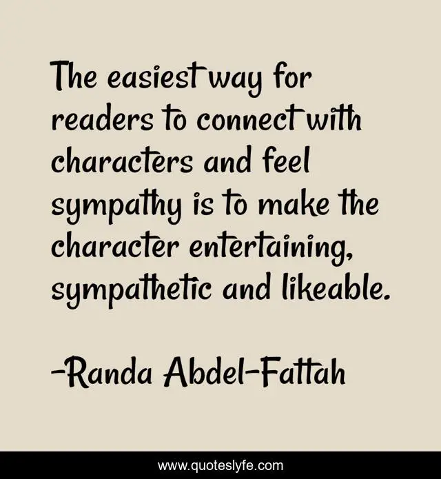 This page presents the quote "The easiest way for readers to connect with characters and feel sympathy is to make the character entertaining, sympathetic and likeable.". Author of this quote is Randa Abdel-Fattah. This quote is about character, connect, way,.