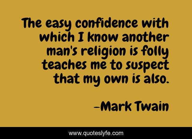 This page presents the quote "The easy confidence with which I know another man's religion is folly teaches me to suspect that my own is also.". Author of this quote is Mark Twain. This quote is about religion, philosophy, humor,.