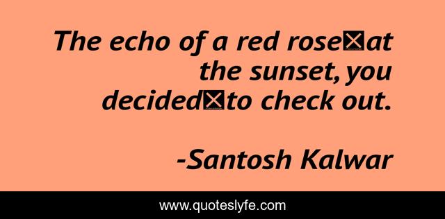 "Santosh Kalwar Quotes." Quoteslyfe.com, 2025. Fri. 05 Dec. 2025. <https://www.quoteslyfe.com/quote/The-echo-of-a-red-rose-at-158333>.