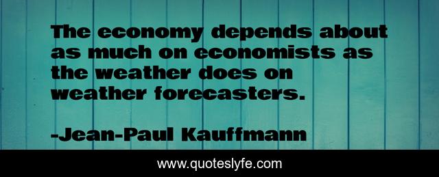 This page presents the quote "The economy depends about as much on economists as the weather does on weather forecasters.". Author of this quote is Jean-Paul Kauffmann. .
