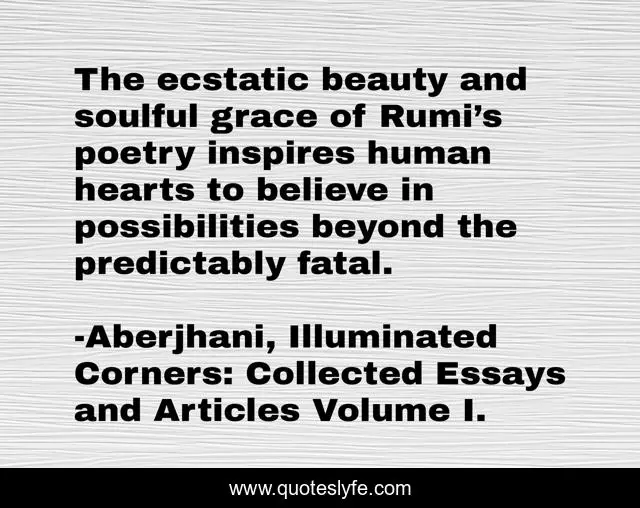 "Aberjhani, Illuminated Corners: Collected Essays and Articles Volume I. Quotes." Quoteslyfe.com, 2025. Sat. 06 Dec. 2025. <https://www.quoteslyfe.com/quote/The-ecstatic-beauty-and-soulful-grace-of-153474>.