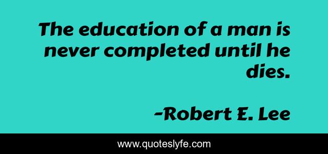 This page presents the quote "The education of a man is never completed until he dies.". Author of this quote is Robert E. Lee. This quote is about until, man,.
