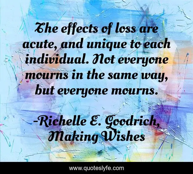 "Richelle E. Goodrich, Making Wishes Quotes." Quoteslyfe.com, 2025. Fri. 05 Dec. 2025. <https://www.quoteslyfe.com/quote/The-effects-of-loss-are-acute-and-122654>.