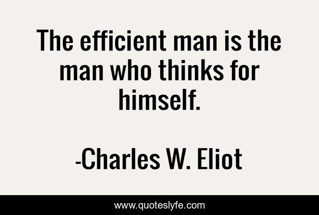 This page presents the quote "The efficient man is the man who thinks for himself.". Author of this quote is Charles W. Eliot. This quote is about self, reliance,.