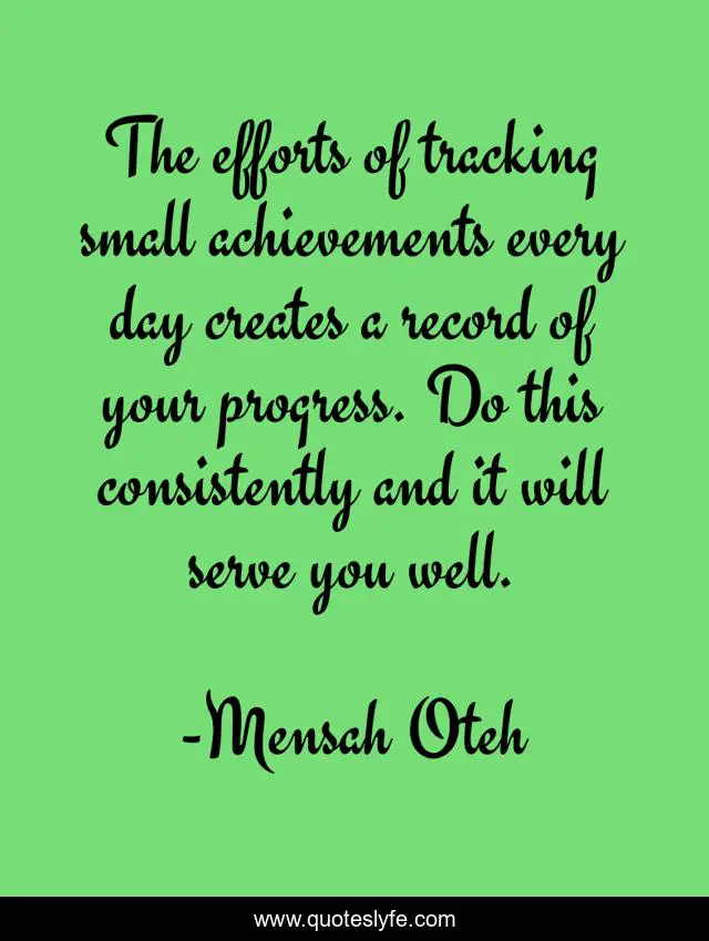"Mensah Oteh Quotes." Quoteslyfe.com, 2025. Sat. 06 Dec. 2025. <https://www.quoteslyfe.com/quote/The-efforts-of-tracking-small-achievements-every-49164>.