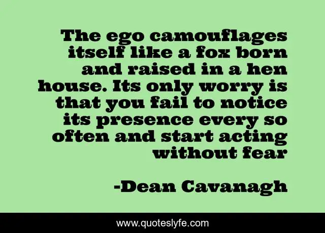 This page presents the quote "The ego camouflages itself like a fox born and raised in a hen house. Its only worry is that you fail to notice its presence every so often and start acting without fear". Author of this quote is Dean Cavanagh. .