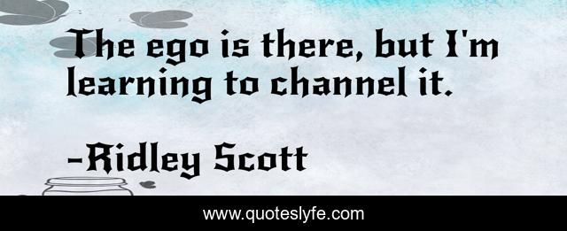 This page presents the quote "The ego is there, but I'm learning to channel it.". Author of this quote is Ridley Scott. This quote is about ego, channel,.