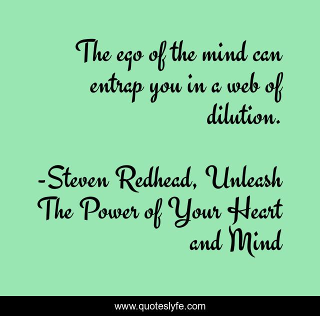 This page presents the quote "The ego of the mind can entrap you in a web of dilution.". Author of this quote is Steven Redhead, Unleash The Power of Your Heart and Mind. This quote is about entrap, mind, dilution, web-of-dilution, ego,.