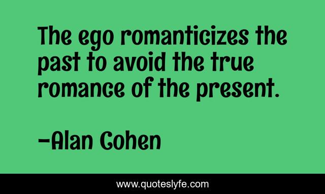 This page presents the quote "The ego romanticizes the past to avoid the true romance of the present.". Author of this quote is Alan Cohen. This quote is about past, ego, present,.