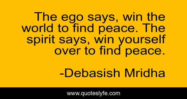 This page presents the quote "The ego says, win the world to find peace. The spirit says, win yourself over to find peace.". Author of this quote is Debasish Mridha. This quote is about philosophy, debasish-mridha, quotes, win-the-world, ego, debasish-mridha-md, inspirational, enthusiasm, find-peace,.
