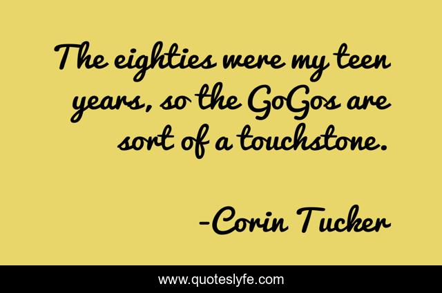 This page presents the quote "The eighties were my teen years, so the GoGos are sort of a touchstone.". Author of this quote is Corin Tucker. This quote is about teen years, years,.