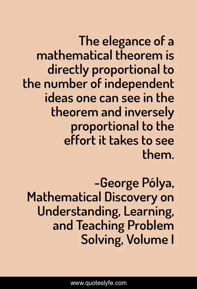 "George Pólya, Mathematical Discovery on Understanding, Learning, and Teaching Problem Solving, Volume I Quotes." Quoteslyfe.com, 2025. Fri. 05 Dec. 2025. <https://www.quoteslyfe.com/quote/The-elegance-of-a-mathematical-theorem-is-205313>.
