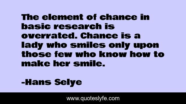 This page presents the quote "The element of chance in basic research is overrated. Chance is a lady who smiles only upon those few who know how to make her smile.". Author of this quote is Hans Selye. This quote is about science, research,.