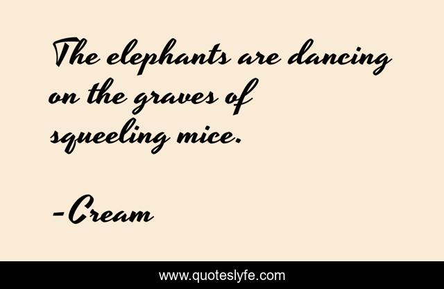 This page presents the quote "The elephants are dancing on the graves of squeeling mice.". Author of this quote is Cream. This quote is about society, oppression, materialism,.