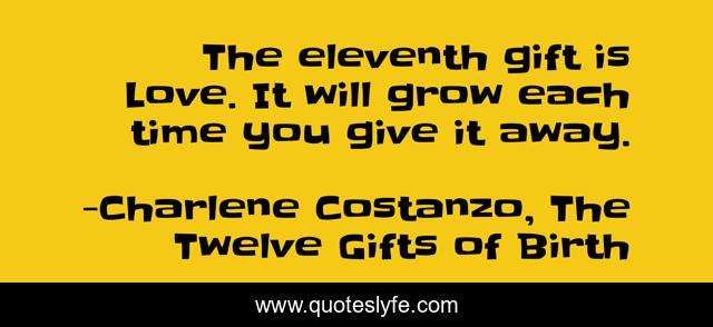 "Charlene Costanzo, The Twelve Gifts of Birth Quotes." Quoteslyfe.com, 2025. Tue. 09 Dec. 2025. <https://www.quoteslyfe.com/quote/The-eleventh-gift-is-Love-It-will-211515>.