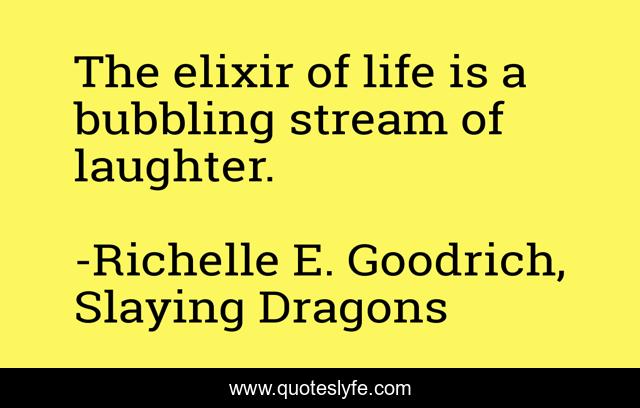 This page presents the quote "The elixir of life is a bubbling stream of laughter.". Author of this quote is Richelle E. Goodrich, Slaying Dragons. This quote is about humor, laugh, laugh-out-loud, richelle-e-goodrich, richelle, laughing, elixir-of-life, richelle-goodrich, laughter,.