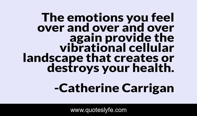 This page presents the quote "The emotions you feel over and over and over again provide the vibrational cellular landscape that creates or destroys your health.". Author of this quote is Catherine Carrigan. This quote is about emotions-and-control, emotions,.