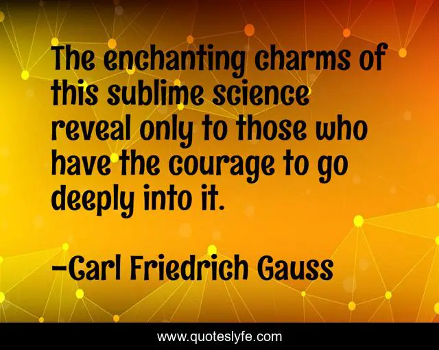 This page presents the quote "The enchanting charms of this sublime science reveal only to those who have the courage to go deeply into it.". Author of this quote is Carl Friedrich Gauss. This quote is about go, reveal, courage,.