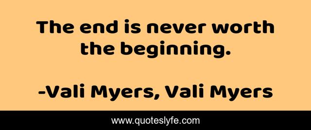 "Vali Myers, Vali Myers Quotes." Quoteslyfe.com, 2025. Fri. 05 Dec. 2025. <https://www.quoteslyfe.com/quote/The-end-is-never-worth-the-beginning-256288>.