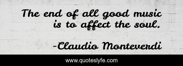 This page presents the quote "The end of all good music is to affect the soul.". Author of this quote is Claudio Monteverdi. This quote is about good, end, soul,.