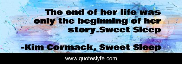 This page presents the quote "The end of her life was only the beginning of her story.Sweet Sleep". Author of this quote is Kim Cormack, Sweet Sleep. This quote is about fantasy-young-adult, paranormal-romance,.