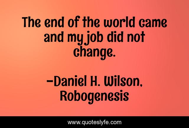 This page presents the quote "The end of the world came and my job did not change.". Author of this quote is Daniel H. Wilson, Robogenesis. This quote is about job, end-of-the-world,.