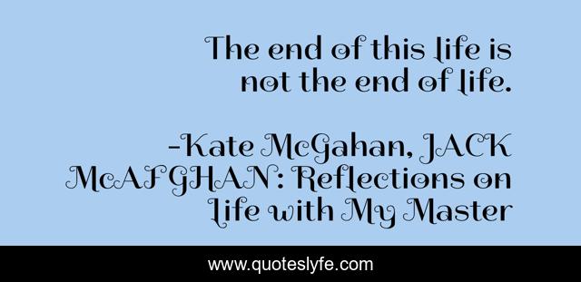This page presents the quote "The end of this life is not the end of life.". Author of this quote is Kate McGahan, JACK McAFGHAN: Reflections on Life with My Master. This quote is about faith, life, heaven, reincarnation, afterlife, grief,.