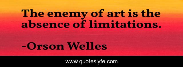 This page presents the quote "The enemy of art is the absence of limitations.". Author of this quote is Orson Welles. This quote is about confidence, art, positive, motivational, optimistic, inspirational, enthusiasm,.