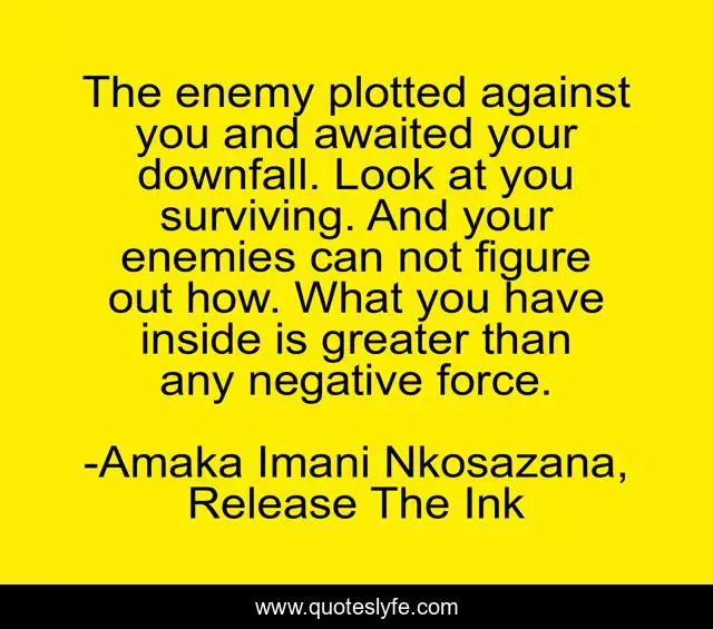 "Amaka Imani Nkosazana, Release The Ink Quotes." Quoteslyfe.com, 2025. Fri. 05 Dec. 2025. <https://www.quoteslyfe.com/quote/The-enemy-plotted-against-you-and-awaited-105571>.