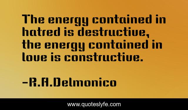 This page presents the quote "The energy contained in hatred is destructive, the energy contained in love is constructive.". Author of this quote is R.A.Delmonico. This quote is about hate, love, affection,.